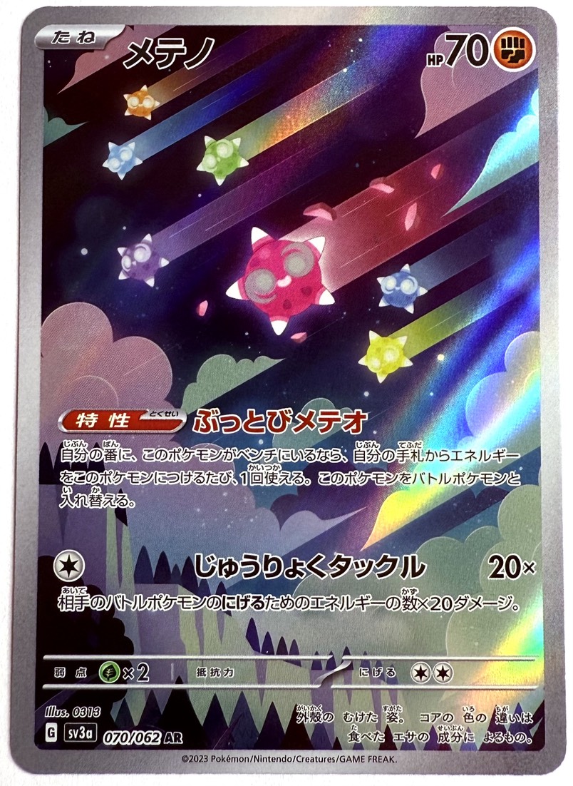Pokémon Erweiterung: sv3a - Raging Surf Kartennummer: 070 / 062 AR Kartenname:MetenoSprache:Japanisch Zustand:Near MintVersand: erfolgt einzeln im Sleeve und sicher verpackt mit Smart Guard